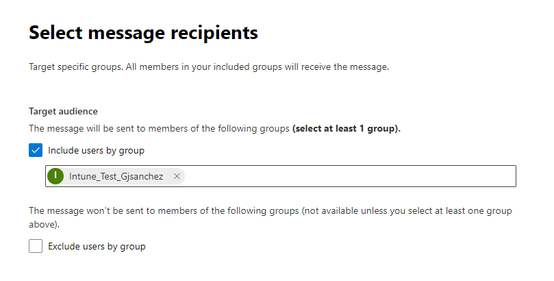 Público objetivo: Los mensajes pueden ser enviados sólo a un grupo de usuario acotado, sin que llegue a toda la organización.