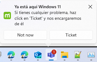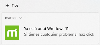 En la imagen podemos ver la notificación que recibiremos en junto a la barra de tareas. En la imagen de abajo podemos ver el mensaje que se queda guardado en la vista de notificaciones de Windows 11.